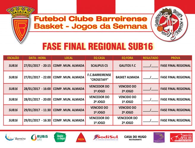 CALENDÁRIO FASE FINAL REGIONAL DE SUB16