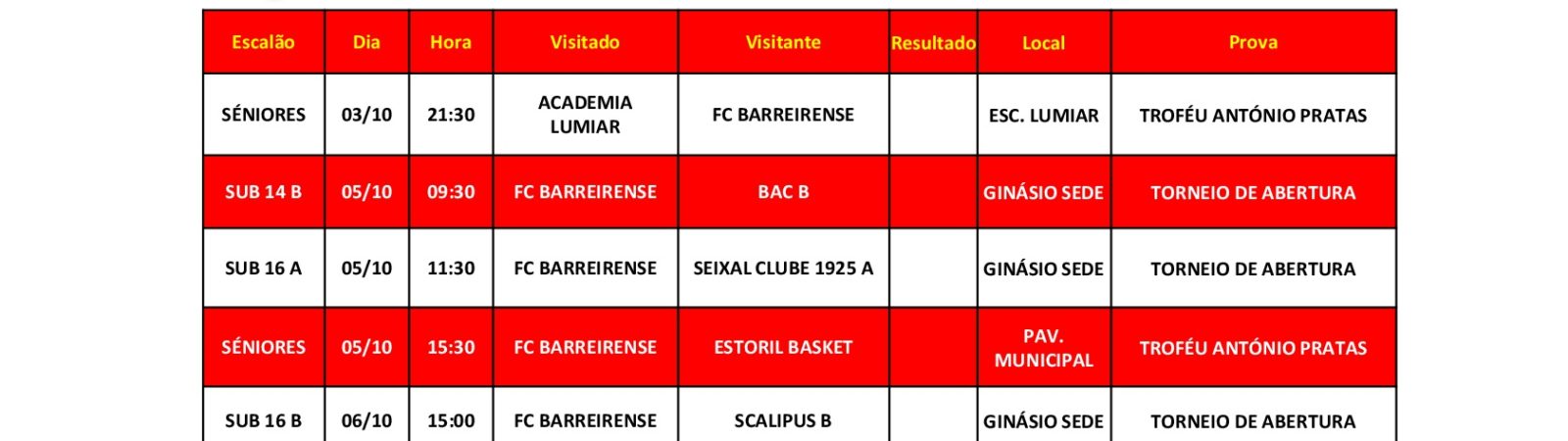 A bola vai ao ar….. Começa esta semana as provas oficiais de basquetebol, os séniores esta quarta feira 03 de outubro dão inicio ao troféu António Pratas com uma deslocação ao Lumiar para defrontar a Academia. Temos um fim de semana prolongado e recheado de basquetebol, com a formação do clube a dar inicio aos … Continue a ler Começo época oficial das equipas de basquetebol