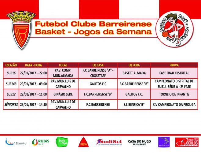 JOGOS DO FIM DE SEMANA – 27 E 29 DE JANEIRO